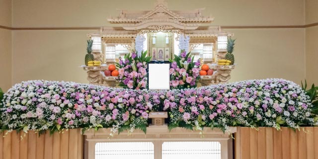 ご予算・ご希望に応じて、お花いっぱいの華やかなお葬式へグレードアップいただけます。